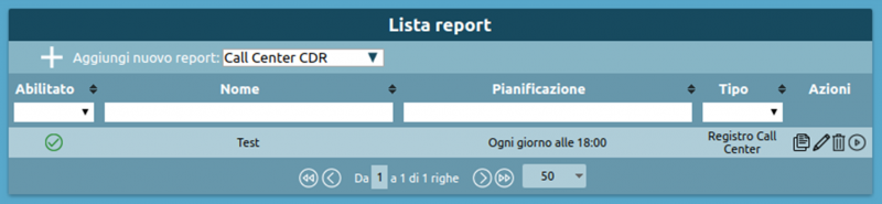 Tramite questo servizio (disponibile a partire dal firmware 4.5.8) è possibile impostare la generazione automatica di report secondo una politica di pianificazione definita dall'utente. Al momento è possibile impostare la generazione periodica di report relativi al CDR call center.